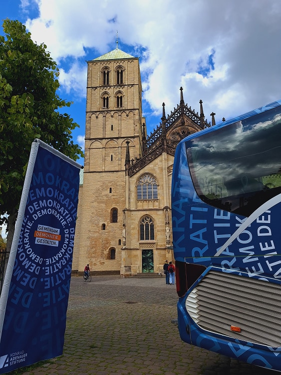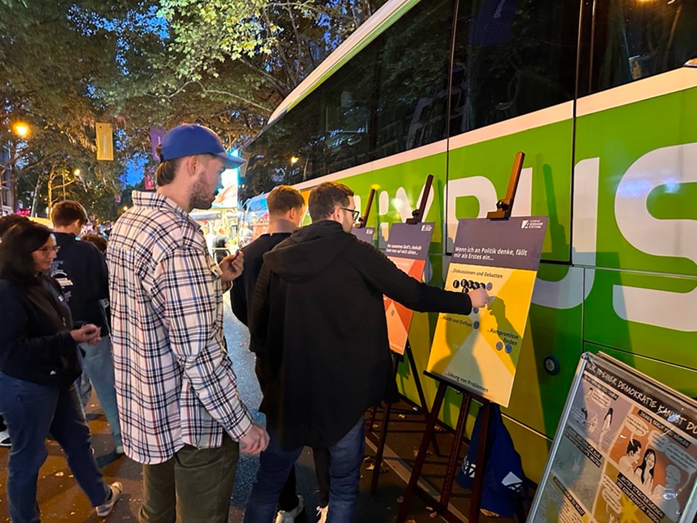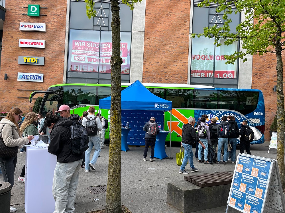 Demokratie ist nicht selbstverständlich. Darauf machen wir mit unserer Demokratiegestalter-Tour aufmerksam. Mit dem Demokratiebus fahren wir quer durch Deutschland und wollen mit Euch ins Gespräch kommen: Was bewegt Euch? Was würdet Ihr verändern, wenn Ihr Bürgermeisterin oder Bürgermeister wärt? Und was läuft schon richtig gut? Unsere Demokratie lebt davon, dass sich Menschen füreinander einsetzen. Also lasst uns zusammenkommen und Gemeinsam.Demokratie.Gestalten.